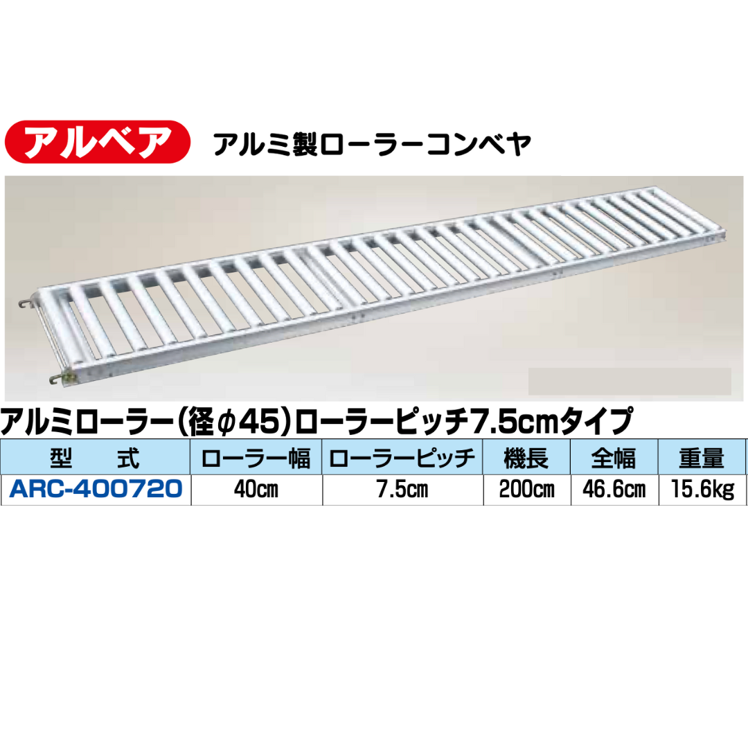 (2)ローラー1本の耐荷重は衝撃がない状態でアルミローラーφ45で30kg。