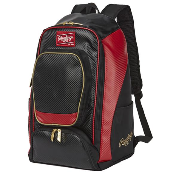 新型チーム対応バックパック。カーボン調の合成皮革素材で濡れても水が浸み込みにくく、汚れをサッと拭き取れます。