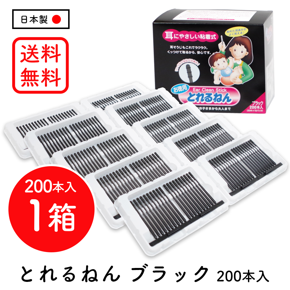 NEW とれるねん ブラック 200本 OWTECロジスティクス 綿棒 粘着綿棒 赤ちゃん 乳児 幼児 耳掃除 耳あか掃除 国内メーカー