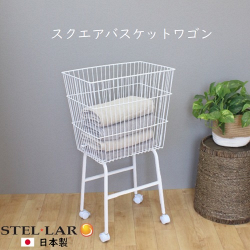 ランドリーワゴン キャスター ランドリーバスケット ワゴン 洗濯カゴ 腰痛対策 キャスター付 おしゃれ 陳列かご 脱衣 タオル スクエアバスケットワゴン 7-WHITE