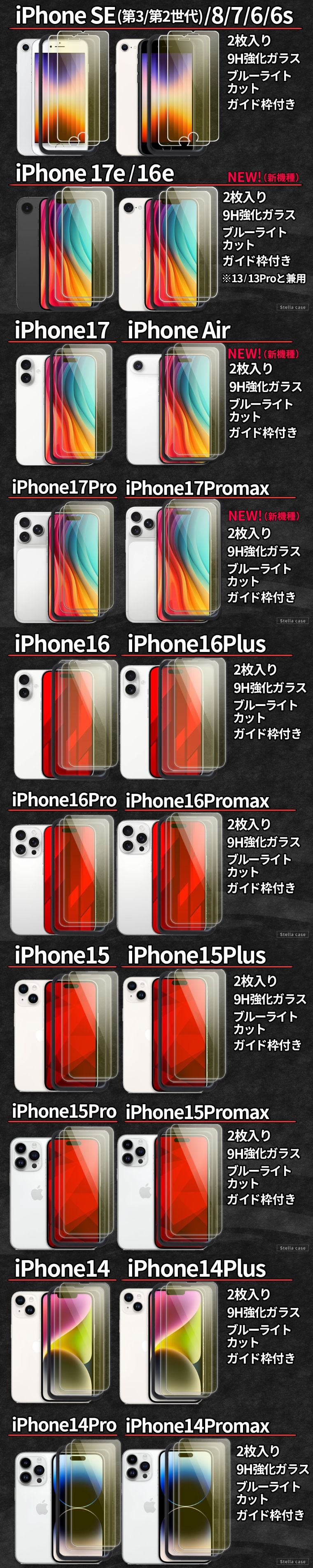 2枚入 ガイド枠付き iPhone SE3 SE2 SE ガラスフィルム ブルーライトカット iPhone 11 12 13 14 15 16 16e 17 17e Pro max mini Plus フィルム アイフォン