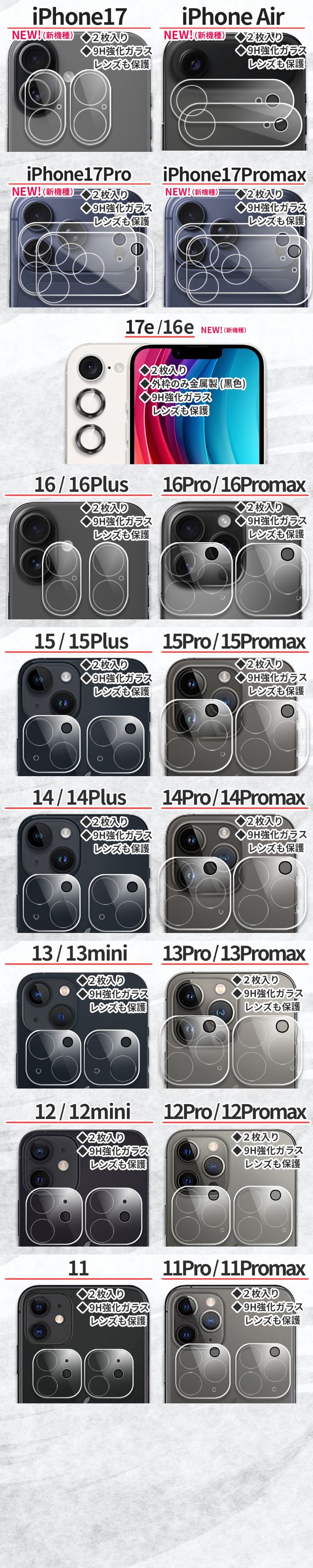 2枚入 iPhone 17 16 17e Pro カメラレンズ iPhone 16e 13 14 15 Pro レンズカバー 保護フィルム iPhone 11 12 Pro max mini カメラカバー クリア アイフォン