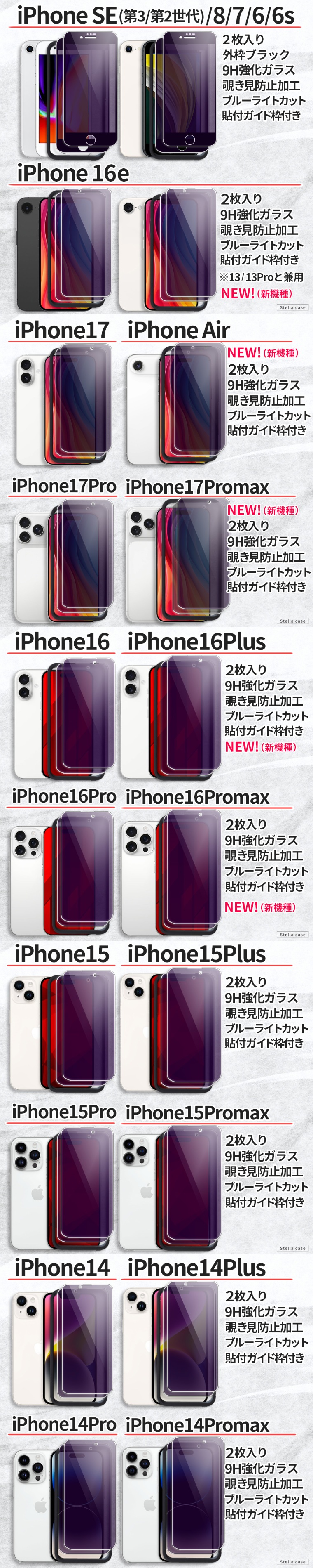 2枚入 iPhone SE3 SE2 SE ガラスフィルム 覗き見防止 ブルーライトカット ガイド枠付 iPhone 11 12 13 14 15 16 16e 17Air Pro max mini フィルム アイフォン