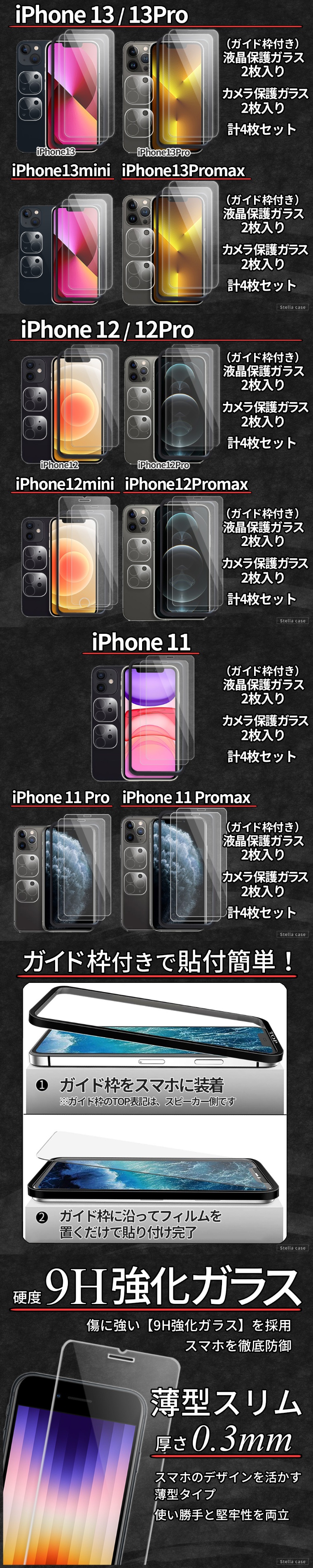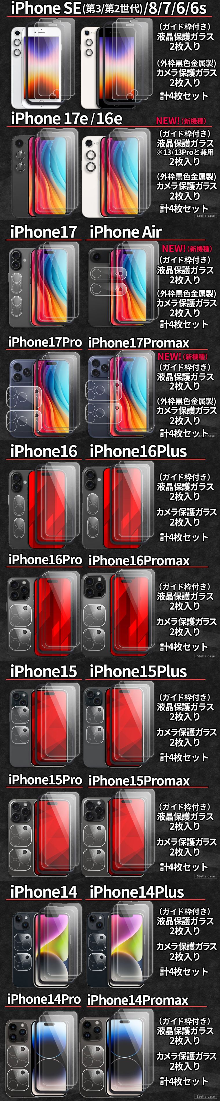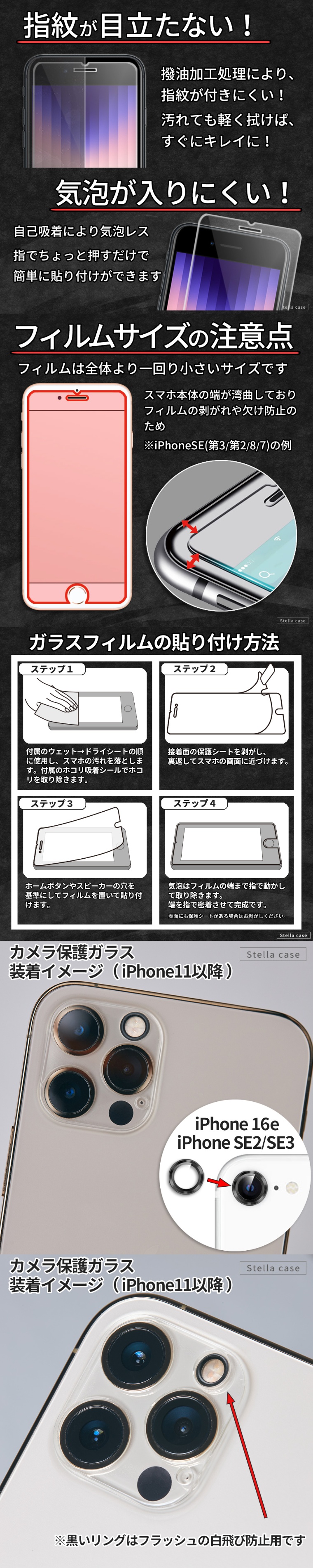 4枚セット iPhone フィルム 2枚 カメラカバー 2枚 ガイド枠 iPhone SE SE2 SE3 11 12 13 14 15 16 16e 17 17e Pro max mini Plus ガラスフィルム アイフォン