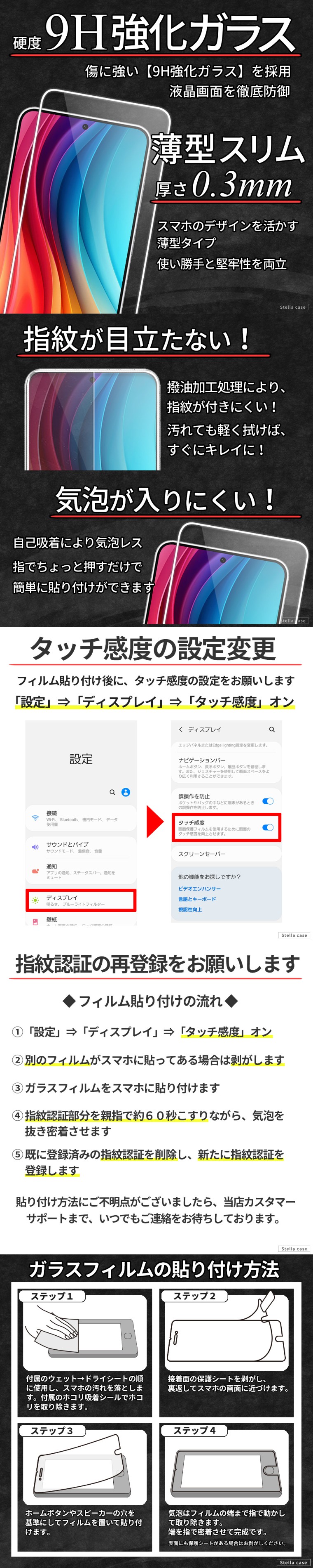 Galaxyは画面端が曲面となっているため、Galaxy端末内の、「設定」→「ディスプレイ」→「タッチ感度」をオンにしてタッチ感度の設定をご変更ください。上記設定でも改善しない場合は30日間無料交換保証にて新しい商品とご交換のご対応をさせていただいておりますのでsupport@stellacase.jpまでご連絡をお願いいたします。
