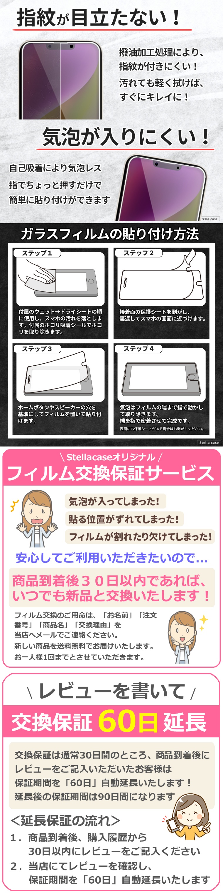 強化ガラスフィルム(覗き見防止加工 ブルーライトカット) + クリーニングクロス + ホコリ除去シール