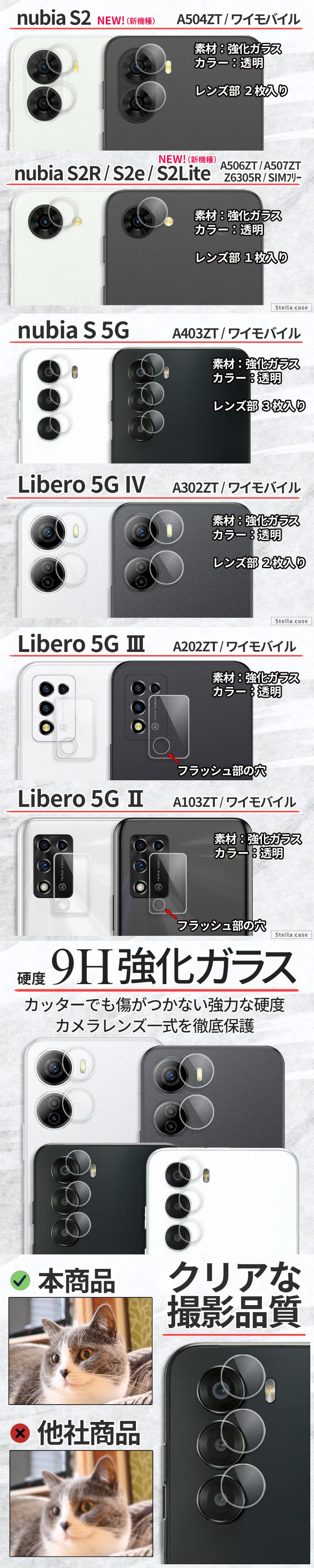 nubia S 5G S2 S2R S2e カメラ保護フィルム Libero 5G II III IV ガラスフィルム 保護フィルム 強化ガラス ZTE リベロ5G II III IV フィルム カバー シール