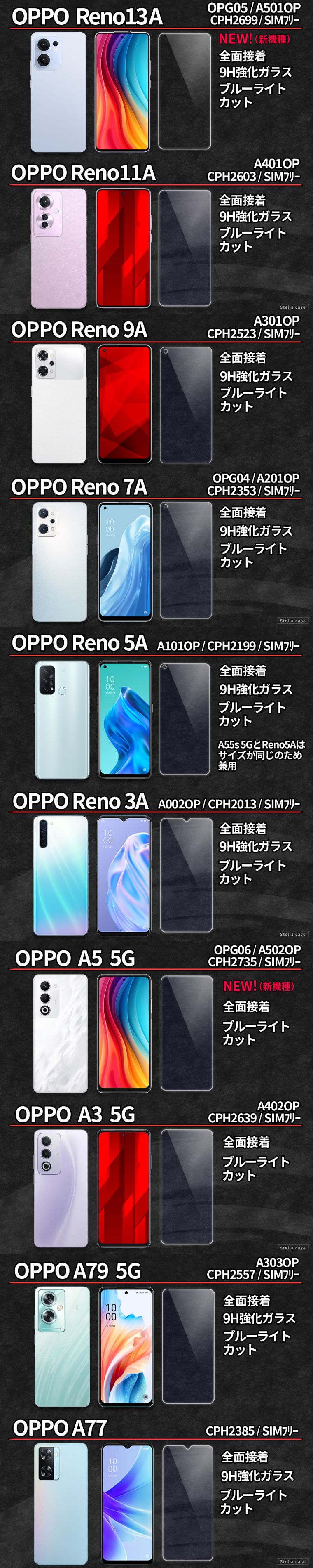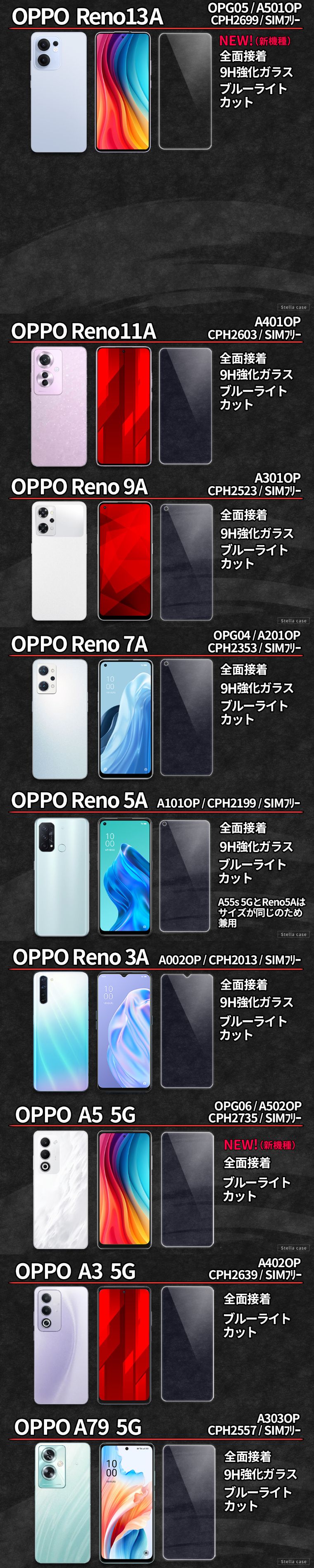 ※「Reno5A」と「A55s 5G」はサイズが同じのため兼用です。カゴにお入れになる際に、「Reno5A /A55s 5G (A101OP/A102OP」をご選択ください。