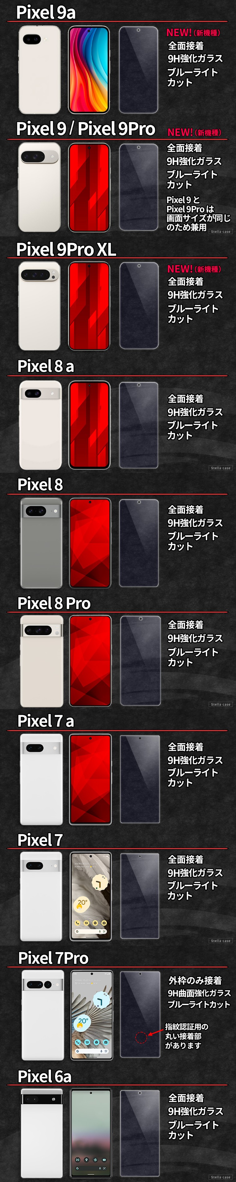 ※Pixel9 と Pixel9Pro はサイズが同じのため兼用です。
