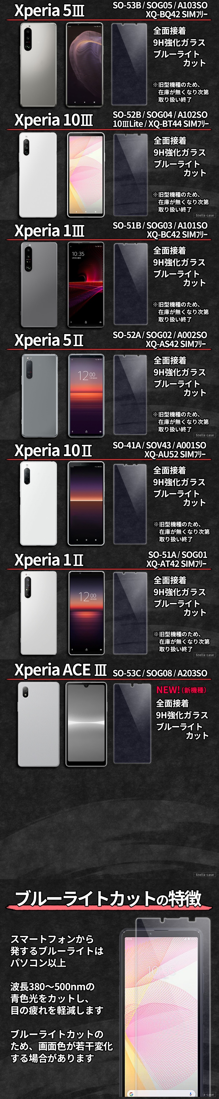 Xperia 10V 10VI 10VII ガラスフィルム ブルーライトカット Xperia 1V 1IV 1VI 1VII 5IV ACEIII 10III 5V 10IV フィルム Xperia 1III 10II フィルム シール