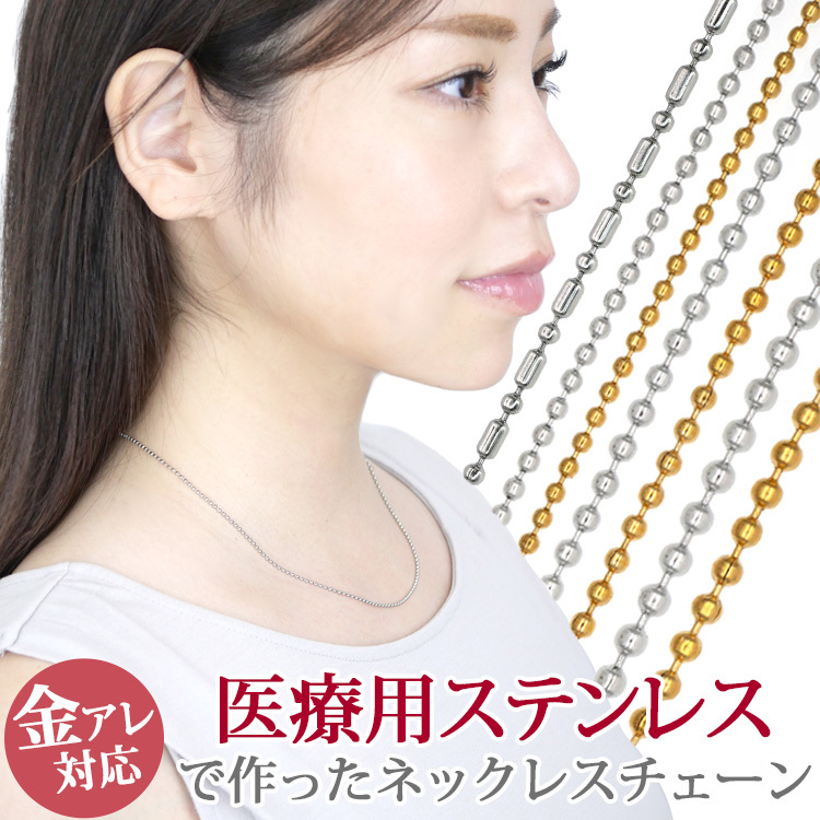 ネックレス ボールチェーンのみサージカルステンレス レディース メンズ 金属アレルギー対応 長さ 40cm 45cm 50cm 60cm 70cm 316l