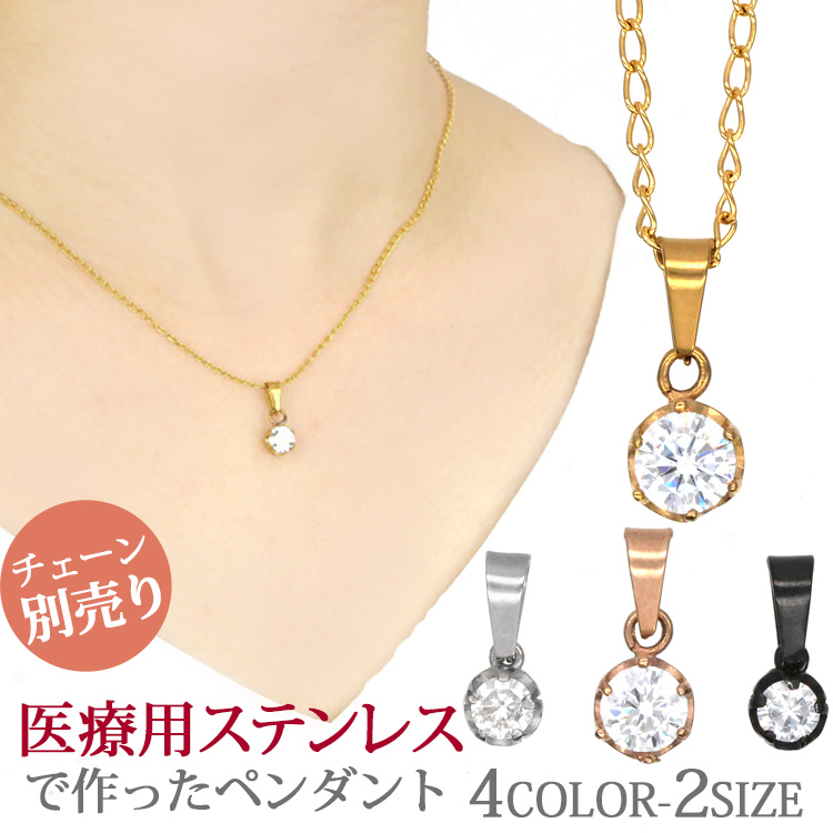 一粒ダイヤ ペンダントトップ ステンレス CZダイヤ キュービックジルコニア クラウンジュエル 金属アレルギー対応 ステンシーナナ nana
