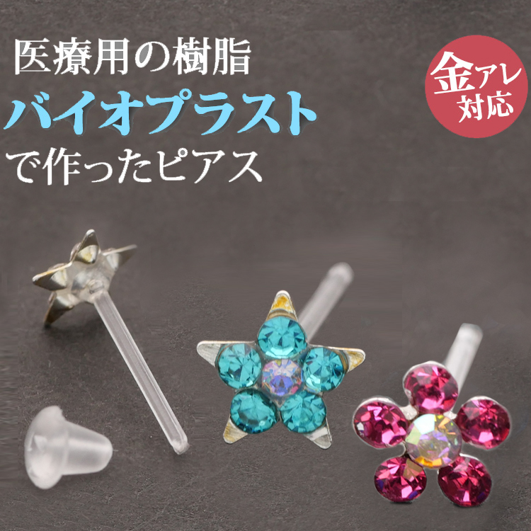 ピアス 樹脂 ファースト セカンド 両耳用人気 金属アレルギー対応 バイオプラスト フラワー スター サウナ ウォータープルーフ