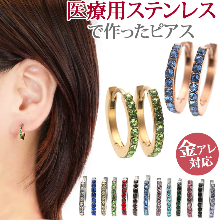 ピアス フープ 小さめ レディース メンズ セカンド 金属アレルギー ラインストーン サージカルステンレス シンプル 両耳用