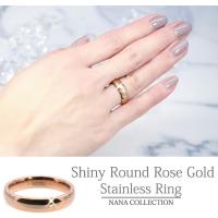 指輪 サージカルステンレス 金属アレルギー対応 リング レディース メンズ シンプル シャイニーラウンド ローズゴールド フラットバンド
