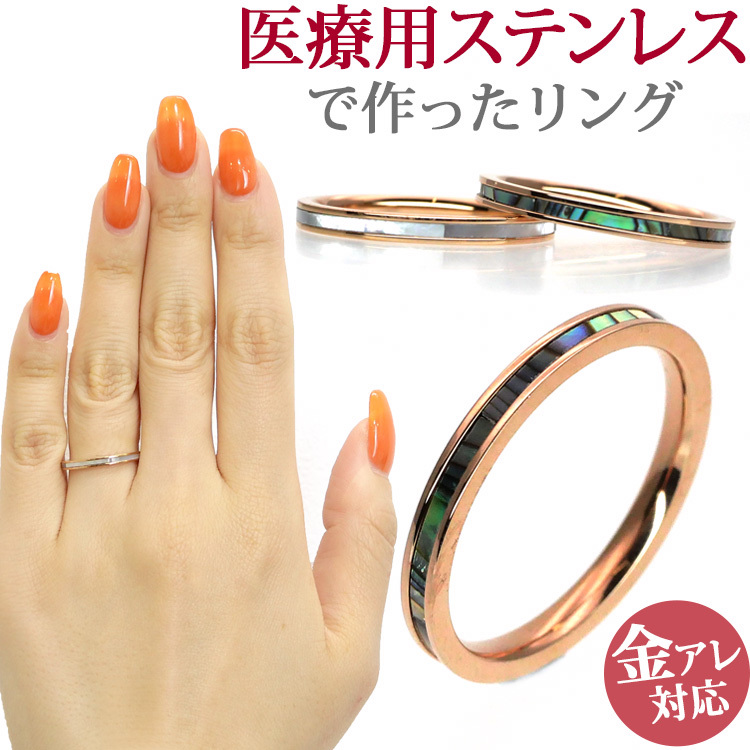 金属アレルギー対応 ステンレスリング シェルラインリング スポーツ プール 指輪 ゆびわ
