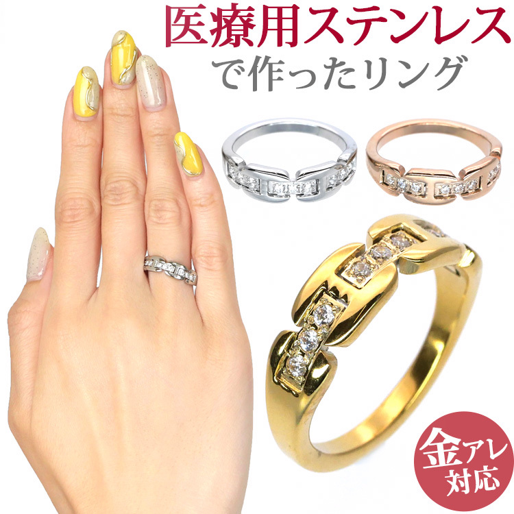 商品名: 金属アレルギー対応 ステンレスリング レディース 指輪 20代 30代 40代 50代 ladys レディス ジュエルチェーン スポーツ プール ゆびわ シルバー ゴールド