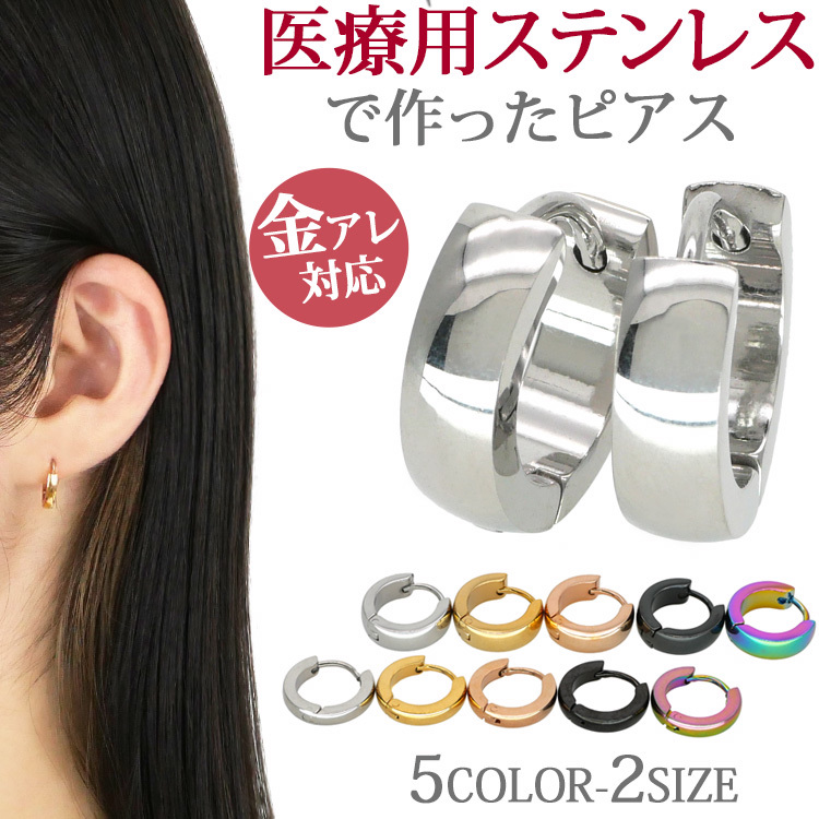 金属アレルギー対応 ピアス フープ 小さめ 細い 太め ファーストピアス ラウンドステンレスピアス サージカルステンレス セカンドピアス 両耳用