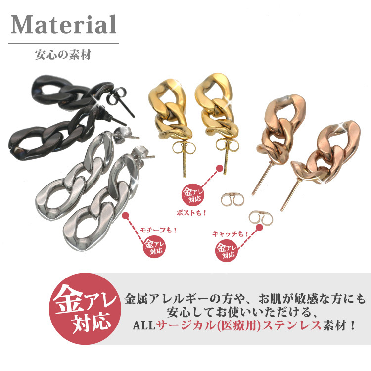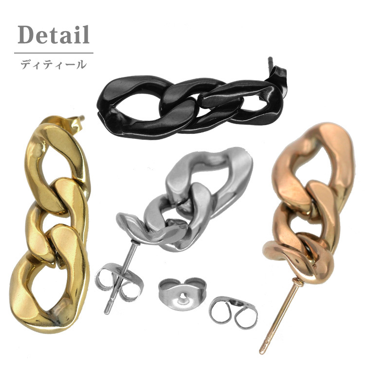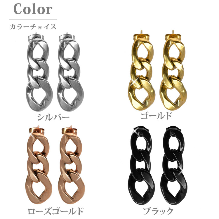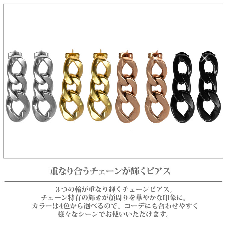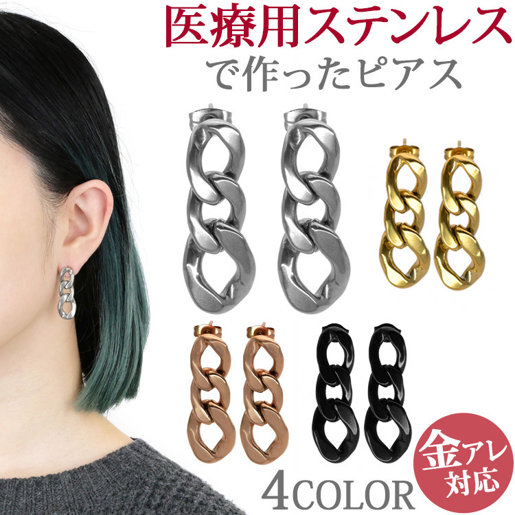 商品名: 金属アレルギー対応 サージカルステンレス ピアス チェーンリンク 太め 両耳用 ファースト セカンド レディース 20代 30代 40代 50代 スタッド スポーツ プール ladys レディス pierce