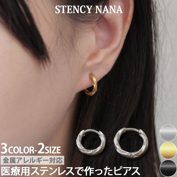 フープピアス 金属アレルギー対応 サージカルステンレス レディース ファースト セカンド ツイスト スポーツ プール 両耳用