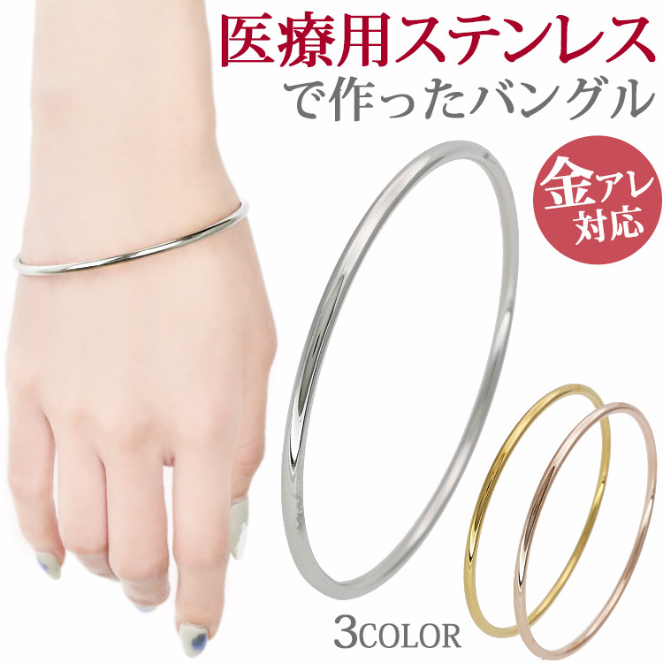 ブレスレット サージカルステンレス レディース 20代 30代 40代 50代 金属アレルギー対応 シンプルラインサークル バングル 316L