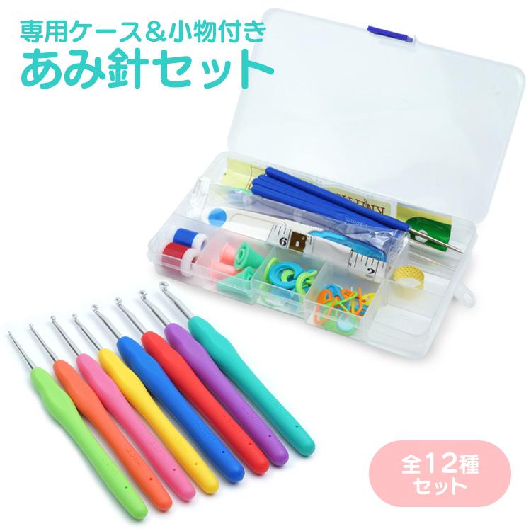 編み針 かぎ針 レース針 ケース付 段数マーカー 小物 セット 編み物 手芸 ハンドメイド 手あみ針 かぎ針編み 毛糸針 あみ針 DIY 工具 手芸