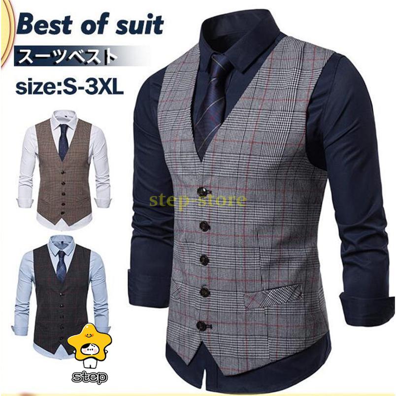 スーツベスト フォーマルベスト メンズ チェック柄 前開き Vネック フォーマル ベスト スーツ ビジネス 仕事 紳士的 結婚式 宴会 冠婚葬祭 大人