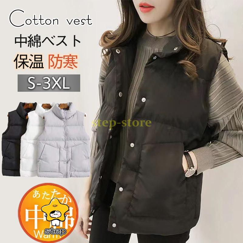 中綿ベスト ダウンベスト レディース ベスト ショート丈 トップス 無地 ゆったり シンプル きれいめ カジュアル アウトドア 通勤通学