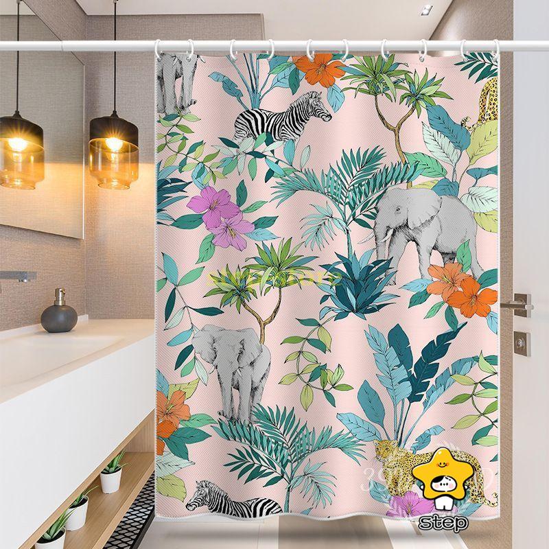 シャワーカーテン おしゃれ カーテンリング付き 防水 防カビ 幅120cm 丈180cm ユニットバス 浴室 子供部屋 動物 仕切り 洗面所 玄関 押し入れ 目隠し