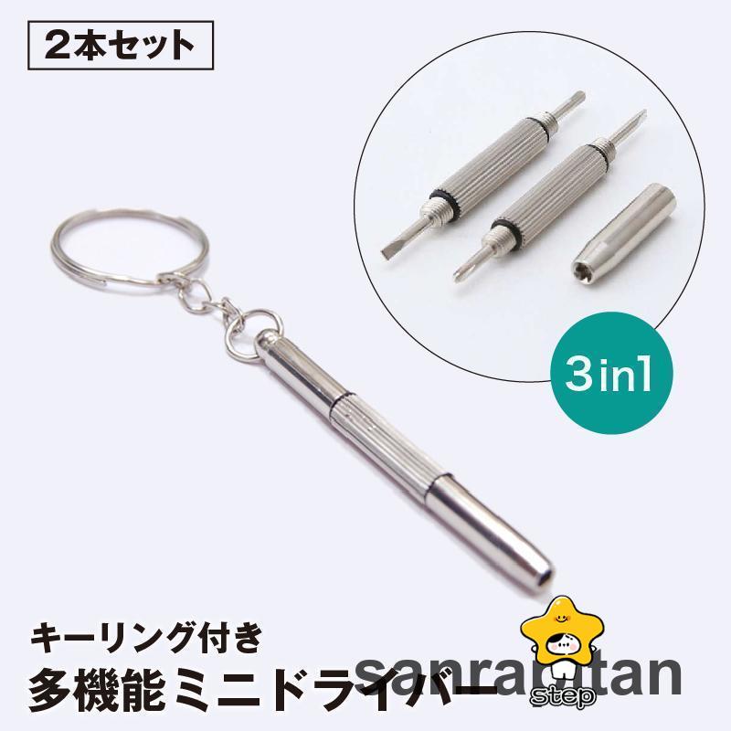 ミニドライバー 2本セット 3in1 キーホルダー プラス マイナス 六角 マルチ 締付工具 ネジ回し 眼鏡 サングラス 修理 小型 コンパクト 携帯
