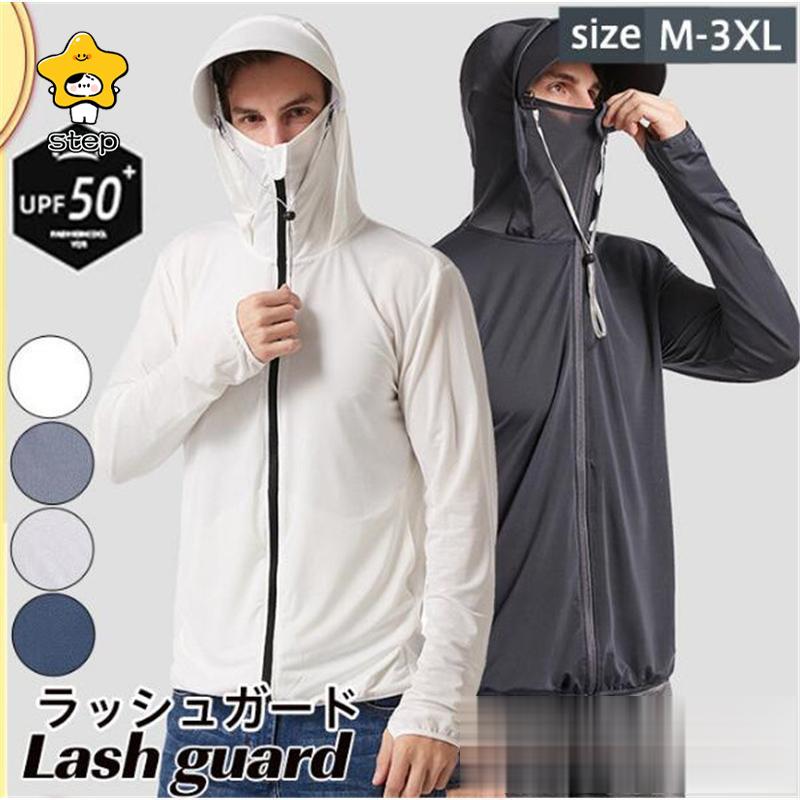 ラッシュガード パーカー メンズ UVカット フード付き 無地 長袖 メッシュ 体型カバー 冷感 薄手 通気 おしゃれ 大きいサイズ 日焼け防止