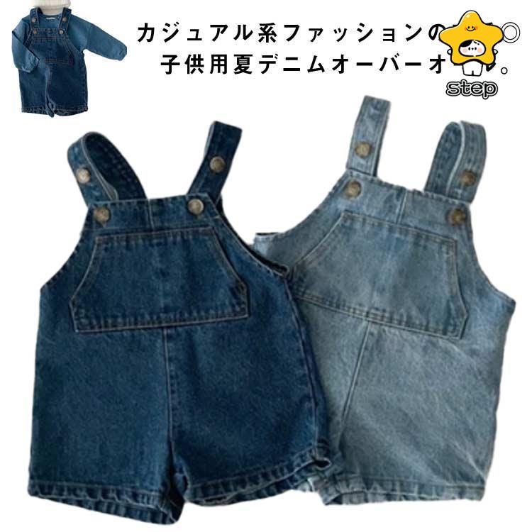 デニムサロペット キッズ オーバーオール ショートパンツ オールインワン デニムパンツ 女の子 男の子 半ズボン 子供服 シンプル カジュア