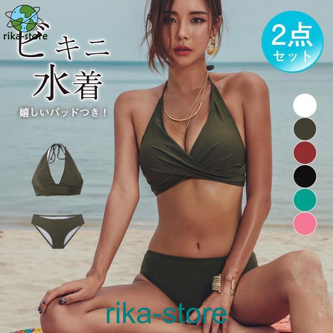 水着 ビキニ レディース 2点セット ビキニセット ビーチ ホルターネック 旅行用 ワイヤーなし セパレート パッド付 温泉着
