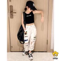 白 パンツ デニム キッズ へそ出し デニム パンツ ダンス衣装 ジーンズ ジーパン ズボン ゆったり ダボダボ 練習着 ボトムス ズボン ブルー レッスン着 子供服