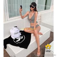 ビキニ 水着 上下セット レディース 女性 スイムウェア クロス フリル ハイウエスト スタンダード 千鳥柄 カジュアル お洒落 海 ビーチ リゾート