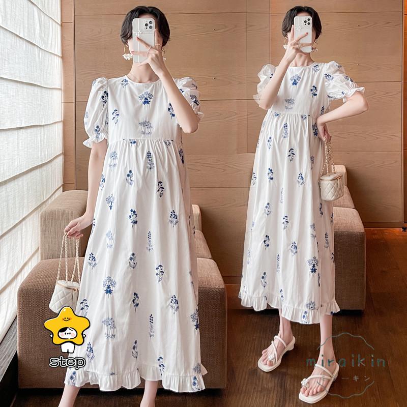 マタニティ ワンピース 半袖 ロング レディース 夏 花柄ワンピース クルーネック 夏ワンピース フレア 産前産後 ゆると 30代40代 白ワンピ 妊娠妊婦 アジアン