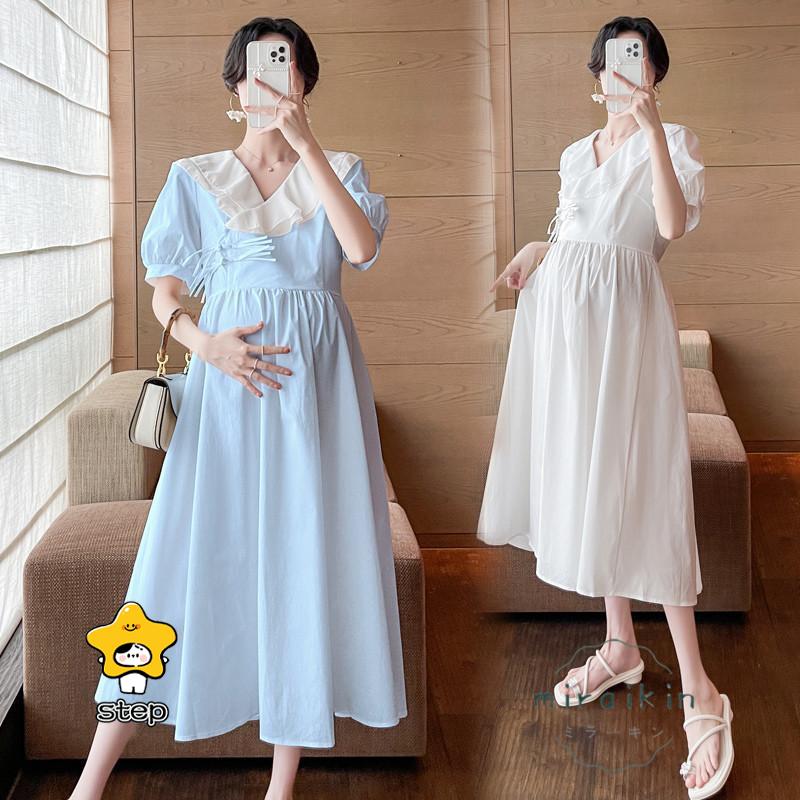 マタニティ ワンピース 夏服 ロング 半袖 ミモレ丈 aライン レディース 夏 vネック フレア 産前産後 リゾート 30代40代 妊娠妊婦 ゆると ギャザー 白 アジアン