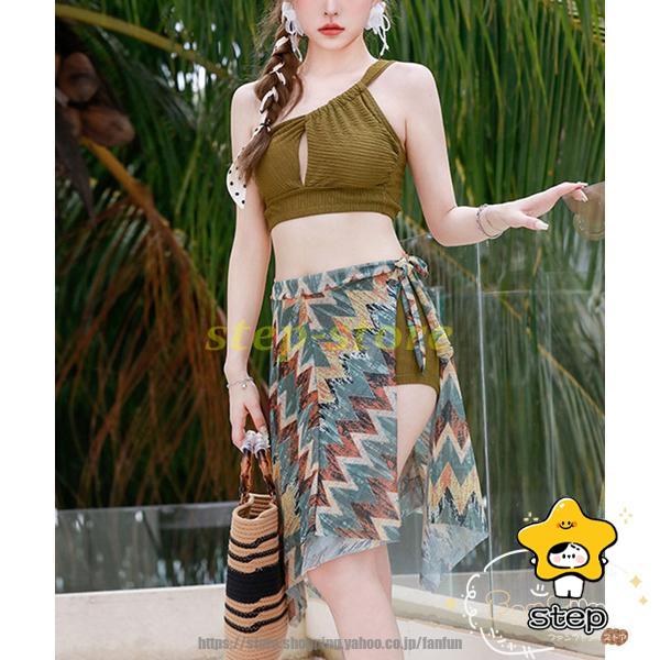 ワンショルダー水着 ビキニ 総柄パレオ ショートパンツ セパレート水着 巻きスカート スイムウェアビスチェ水着オトナ女子 風 小胸水着大人可愛い ビーチタンキニ夏海
