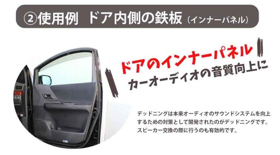 自動車のロードノイズ軽減やオーディオの音質向上向けデッドニング用品となります。