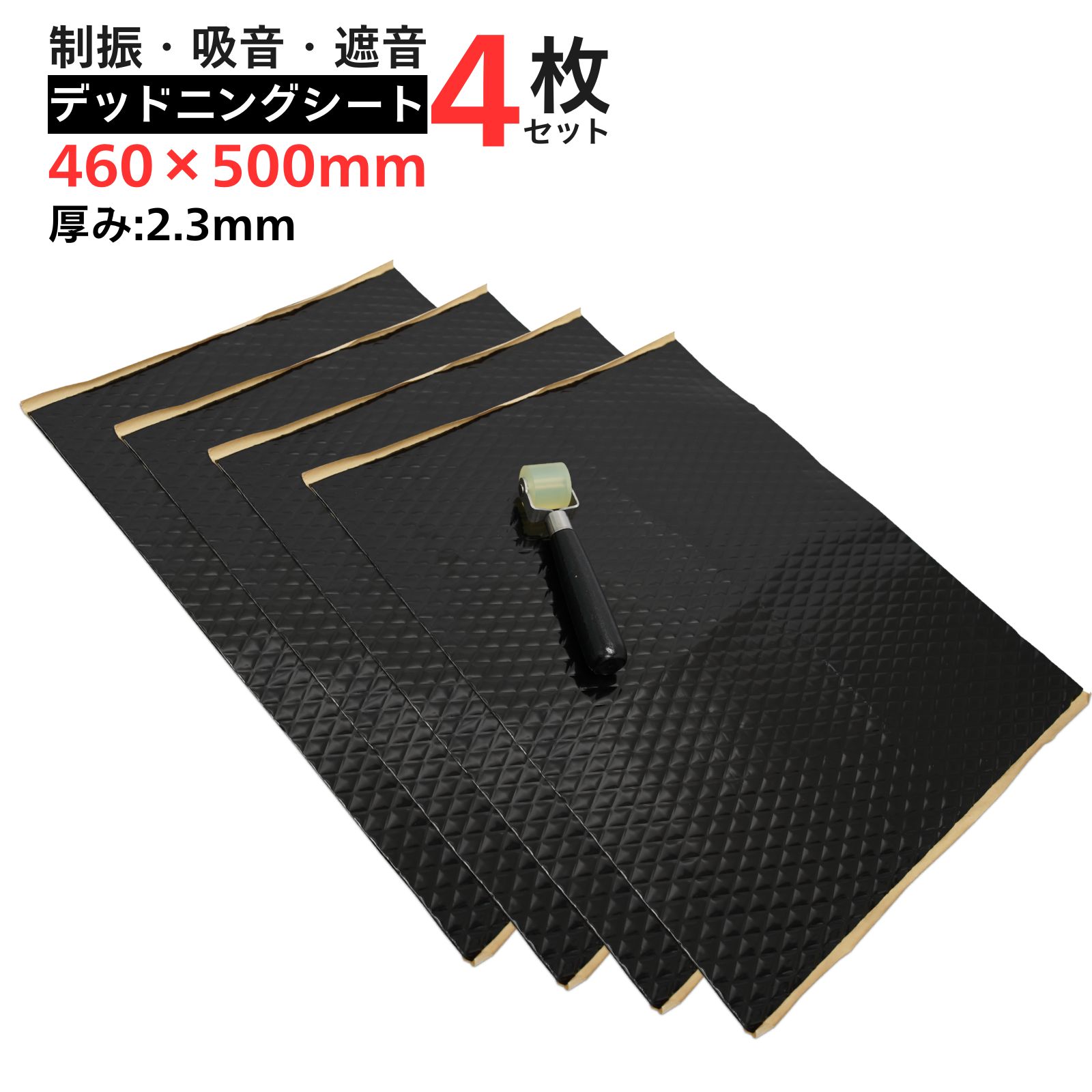 デッドニング デッドニングシート 便利グッズ 車 4枚組 押し込み模様 厚さ2.3mm×幅46cm×長さ40cm 振動制振シート ローラー付き 防振材 防音 黒色