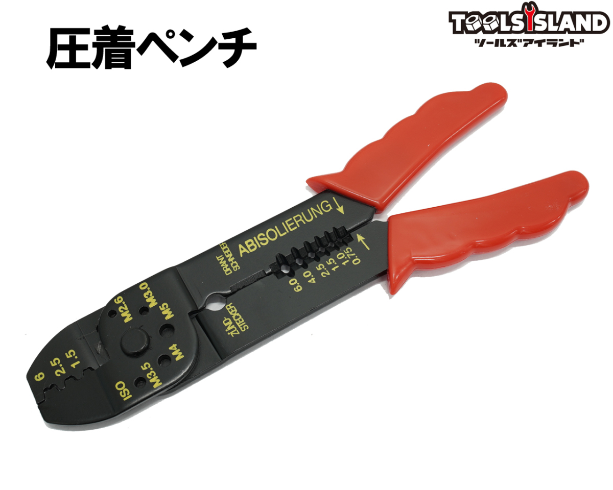 圧着ペンチ 電工ペンチ 圧着工具 クリンピングプライヤー 裸端子 絶縁被覆端子 ストリップ ネジ切断 端子圧着 電線ストリッパー カッター ボルトカット