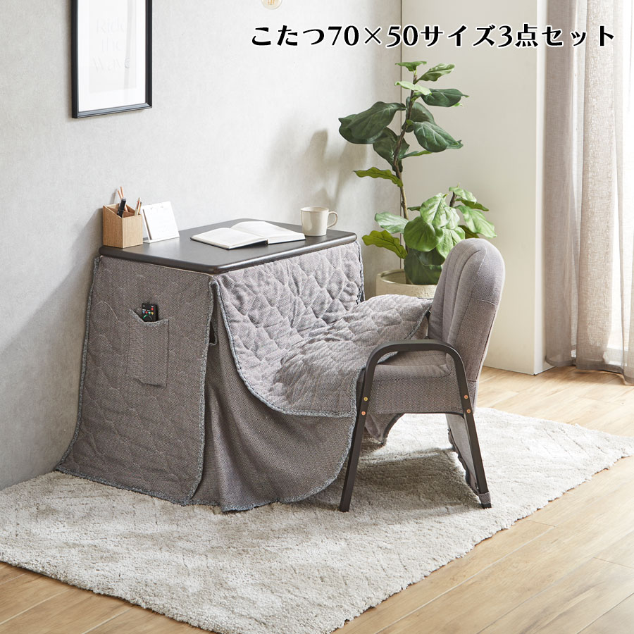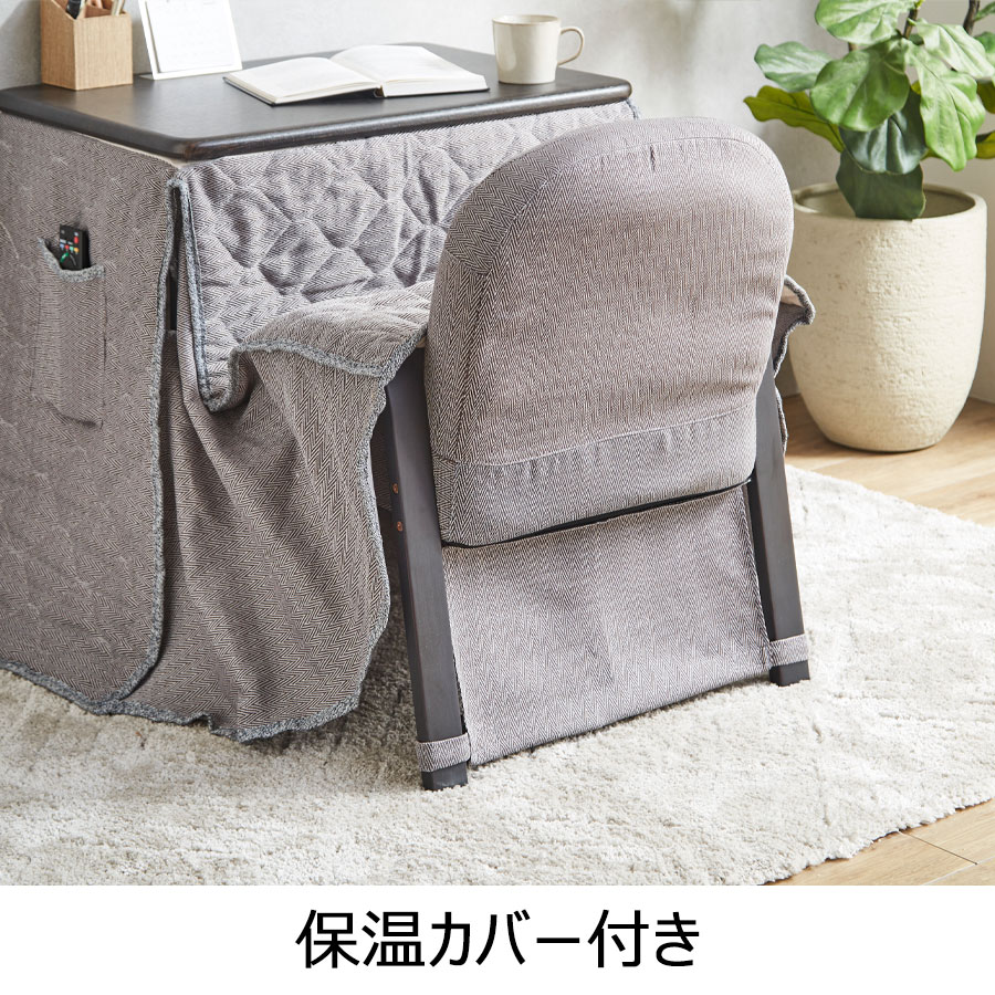幅70cmハイタイプこたつ+チェア1脚+掛け布団の3点セット。ひとりの時間をもっと贅沢に。温かさと癒しのこたつセット。《送料無料》