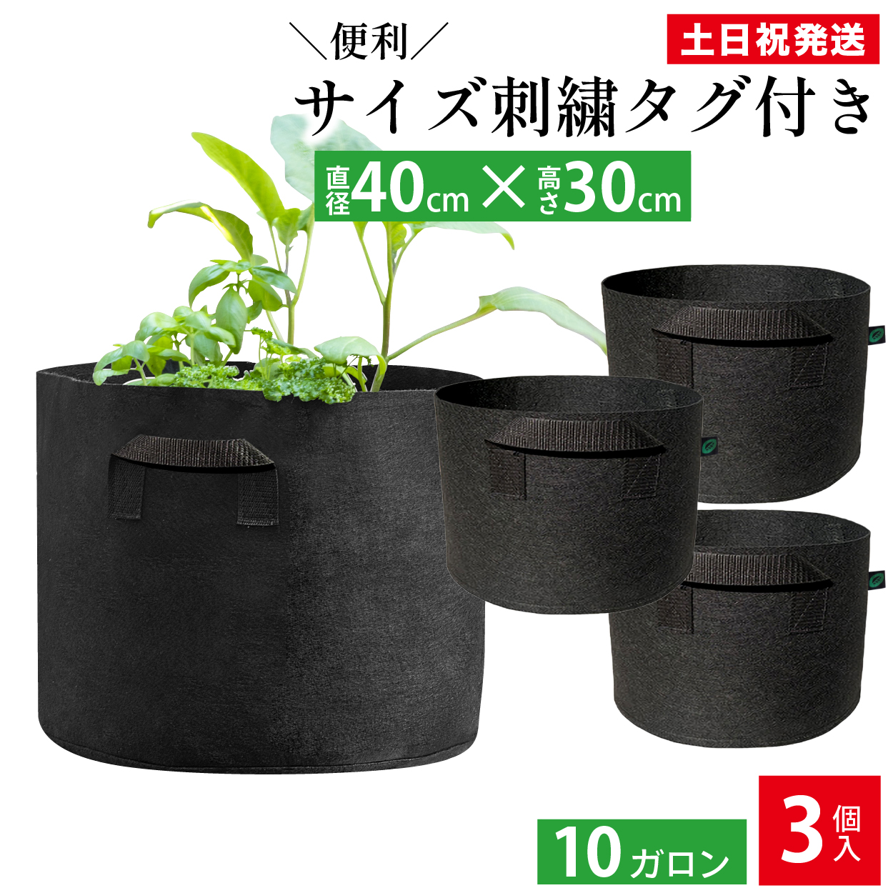 不織布プランター 10ガロン 3個 不織布ポット 14号 40x30 植木鉢 大型 軽い 軽量 深鉢 フェルト 布鉢 黒 家庭菜園 ベランダ菜園 果樹栽培