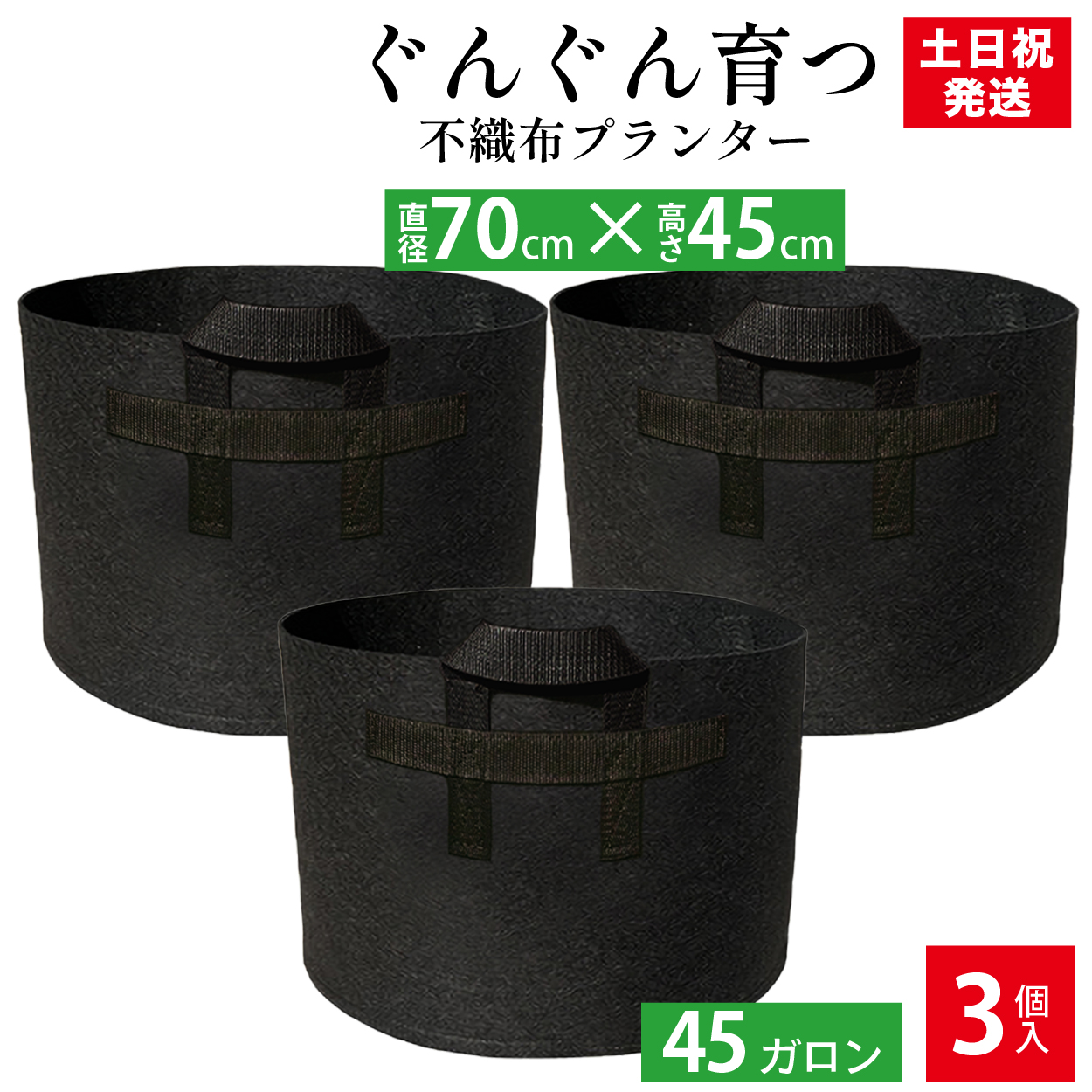 不織布プランター 45ガロン 3個 不織布ポット 家庭菜園 プランター 7号 植木鉢 フェルトプランター 軽い 軽量 深鉢 フェルト 鉢 黒 大型 果樹栽培 野菜