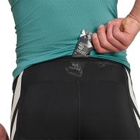 全体に軽量ストレッチウーブンを用い、調節可能なドローコード付きボンディングウエストバンド、リフレクティブロゴ、リフレクティブのadizeroサインをあしらった作り。ウエストバンドジェルバックポケット3つ