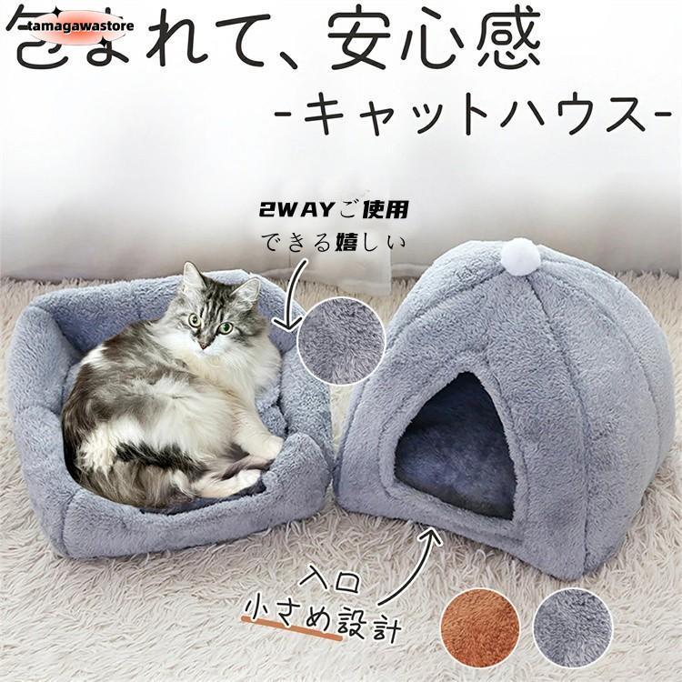 猫ハウス ドーム型 2WAY 冬用 クッション付き 洗える 猫ベッド 犬ベッド ふわふわ 寒さ対策 キャットハウス おしゃれ