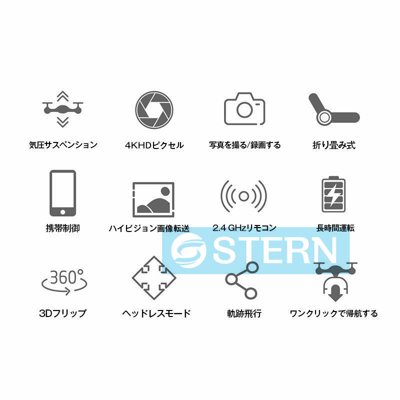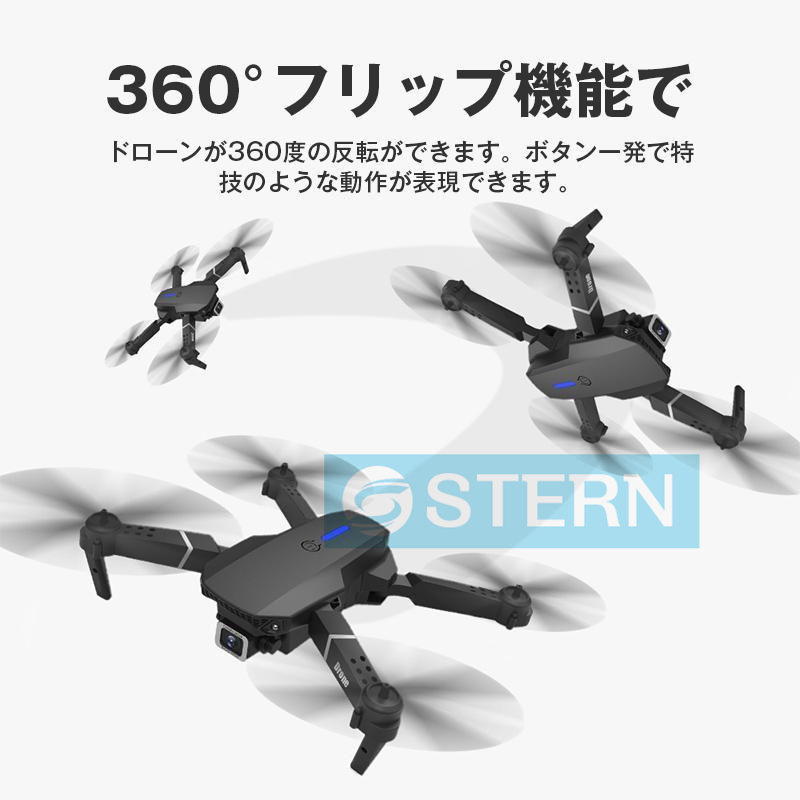 ヘッドレスモード:特にドローンが見えないとき、ヘッドレスモードでは、ドローンの向きがパイロットに対して相対的であるときに、パイロットは制御しやすくなります。ドローンはまたあなたの一日を作るために3Dフリップが装備されています。