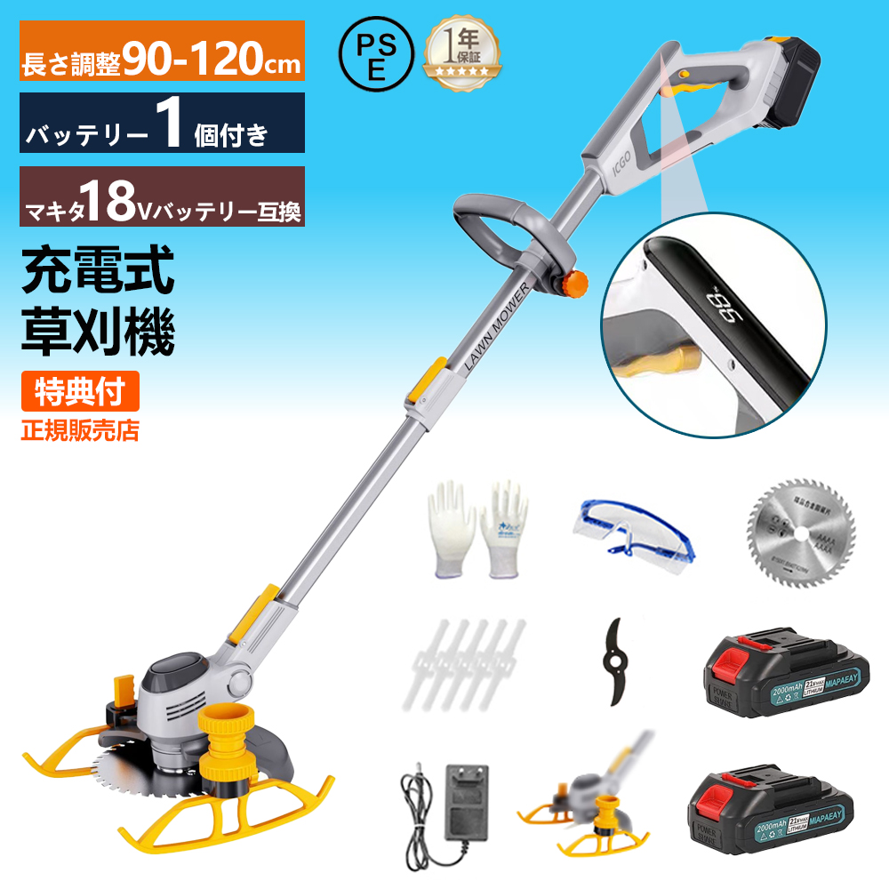 草刈機 充電式 電動 草刈り機 刈払機 マキタバッテリー対応 コードレス LED電源表示 多機能 グラストリマー 角度調整 芝刈り機 軽量 安全 家庭用 1年保証
