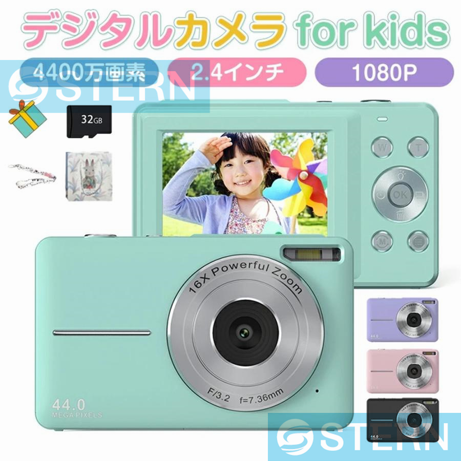デジタルカメラ【4400万画素1080p録画&自撮り可】32GBカード付き 2.4インチ大画面 子供用カメラ 知育玩具 16倍デジタルズーム 簡単操作 ビデオ録画
