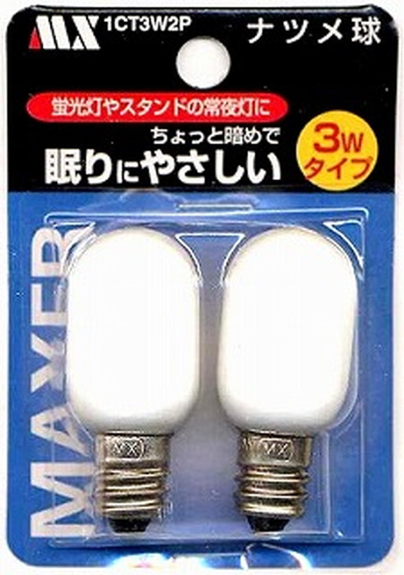 マクサー ナツメ球 2個入 3W 白 1CT3W2P 口金E12
